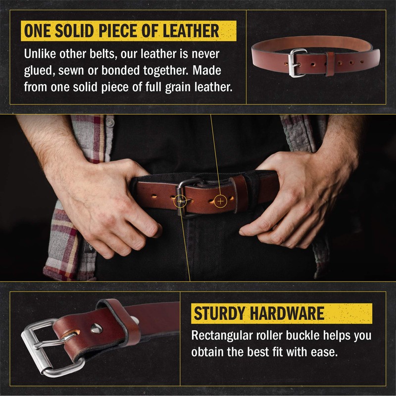 - Say No to Nylon Belts! This 1.5 Inch 14 ounce Premium Full Grain US Leather Gun Belt is constructed from a single slab of thick leather. It is strong enough to carry all your concealed carry gear and stylish enough for discreet everyday use.