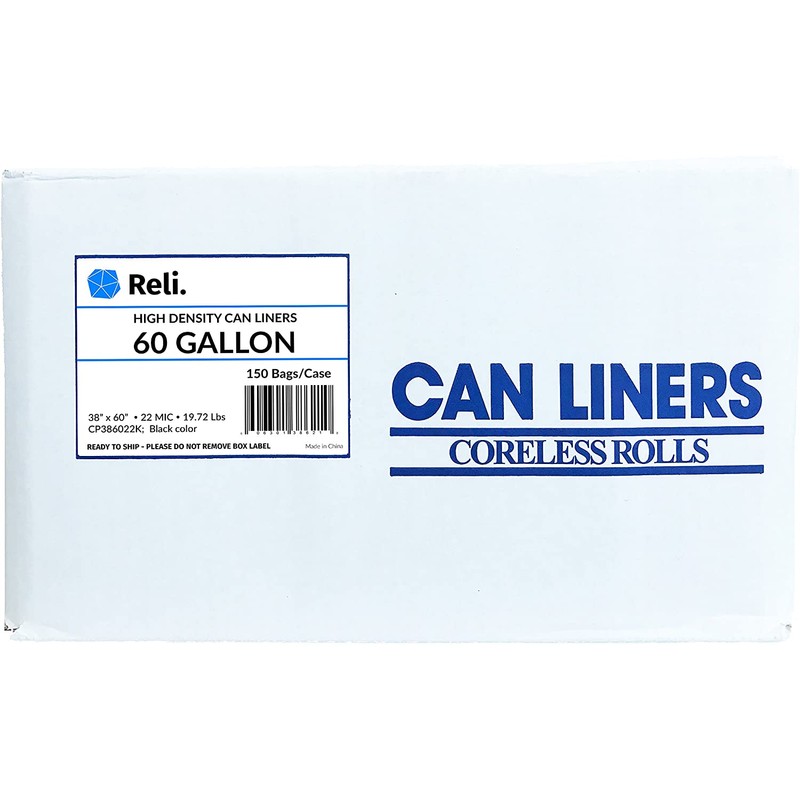 Reli. Easy Grab Trash Bags, 55-60 Gallon (150 Count), Made in USA | Star Seal Super High Density Rolls (Heavy Duty Can Liners, Garbage Bags, Bulk Contractor Bags 50, 55, 60 Gallon Capacity) - Black