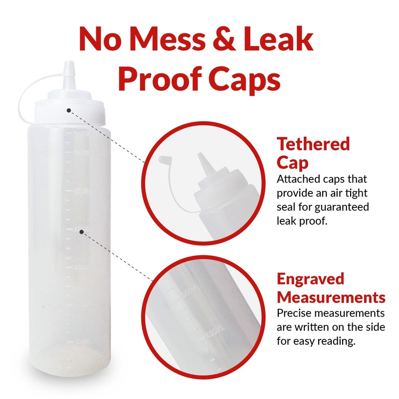 • BPA Free: Our clear 24 ounce squeeze bottles are made with BPA-free, premium LDPE materials