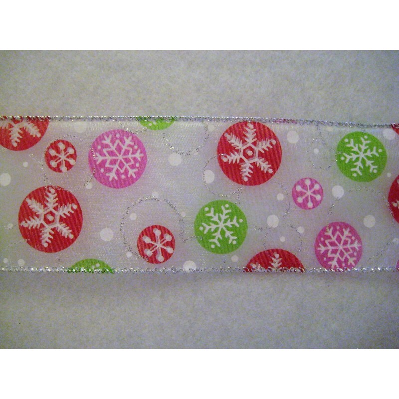 Reliant NEW 25 YD ROLL Pink Red Green Christmas Snowflakes Wired Ribbon 2 1/2"