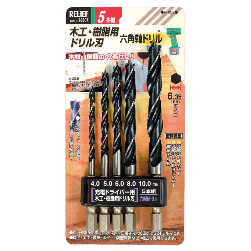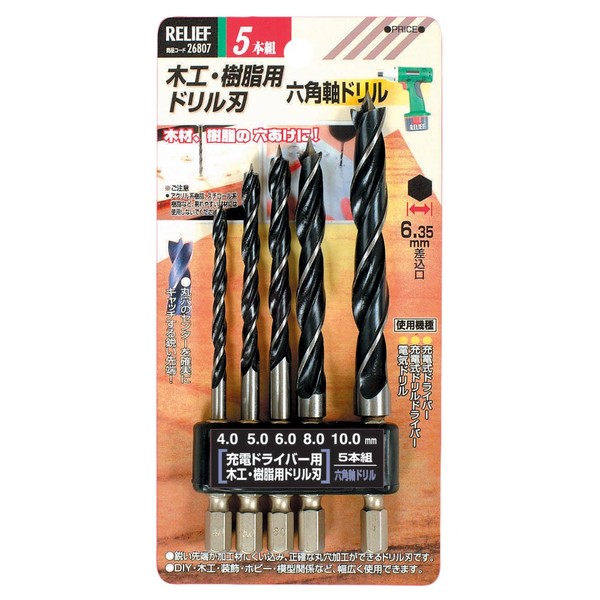 RELIFE 26807 Hexagonal Shaft Drill, Drill Bits for Woodworking and Resin, Set of 5