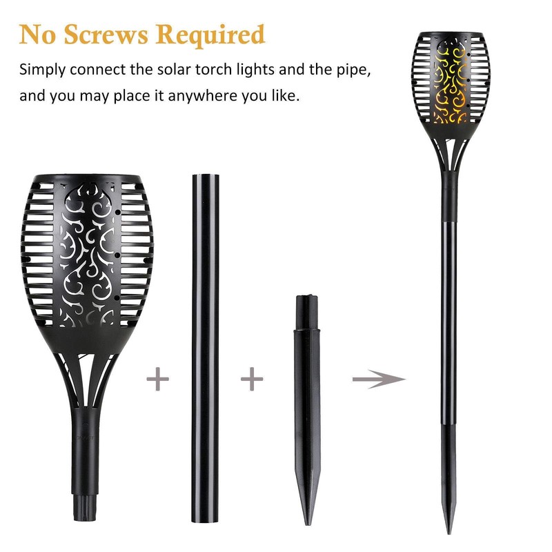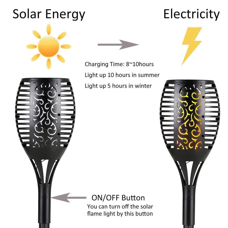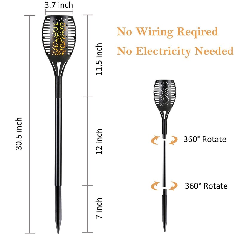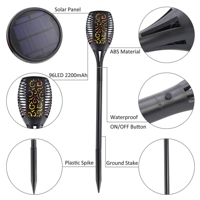 RELIGHTABLE 96 LED 3-Lighting Modes Solar Torch Light Dancing Flickering Flame Lamp (2 Pack)