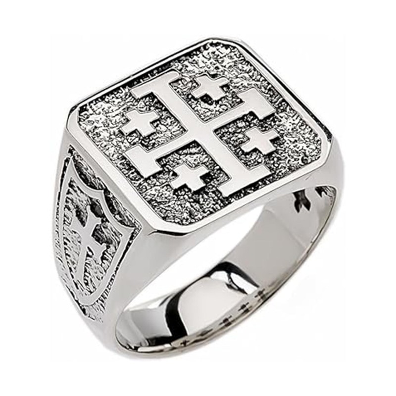• handmade man statement ring designed with the heraldic five-fold Medieval Christian knights templar Jerusalem cross symbol