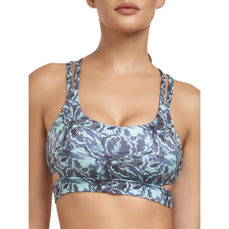 RELLECIGA Women's Blue Leaf Scoop Neck Strappy Cutout Sport Bra Fitness Support Workout Tops Size Medium