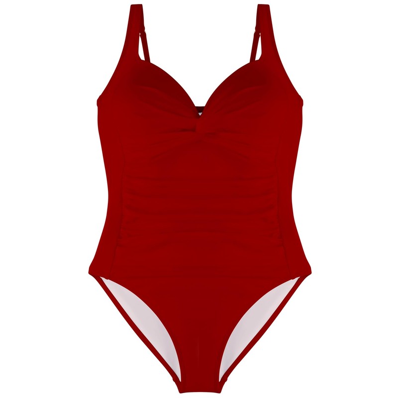 RELLECIGA Women's Molded Cups One Piece Swimsuits Ruched Tummy Control Bathing Suits for Women, Red, Medium