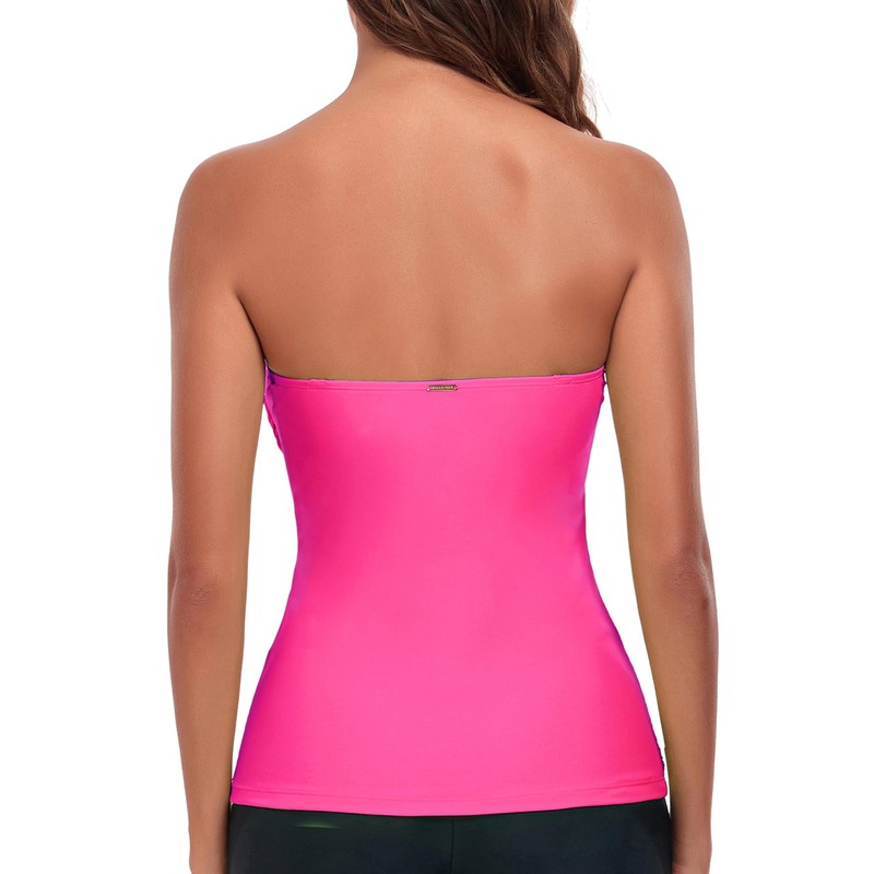 RELLECIGA Women's Neon Rose Ruched Bandeau Tankini Top Swimsuits Size Large