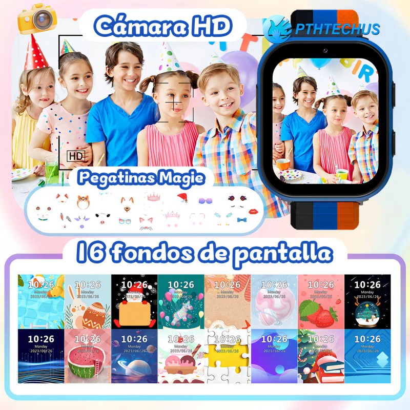 Reloj Inteligente PTHTECHUS 4g Llamadas Reloj Smartwatch Para Compatible con chip SIM 4g Audiolibros SOS Ayuda smartwatch 1.54"LCD FULL HD LT49 Smartwatch Adecuado para niños y niñas color Azul
