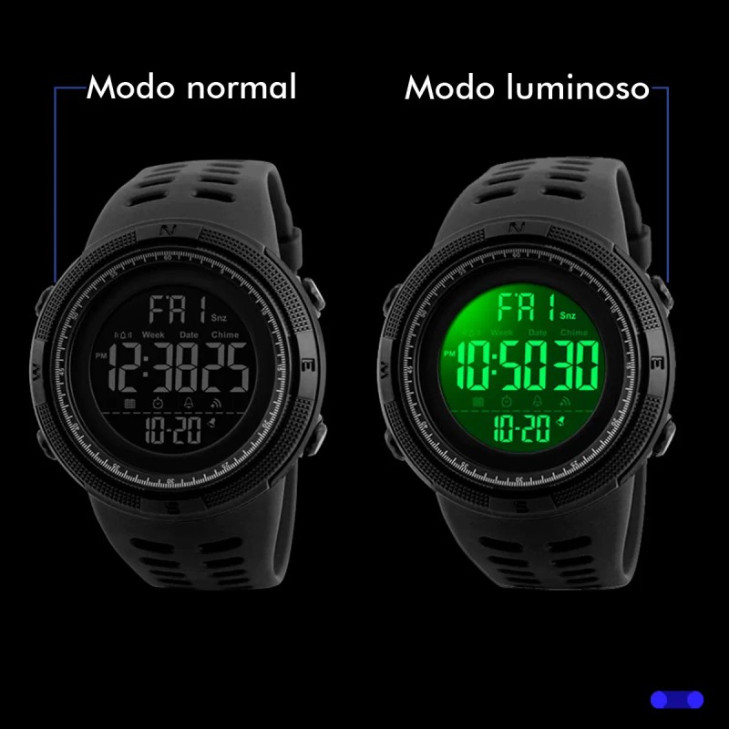 El Skmei 1251 es un reloj digital deportivo para hombre que combina funcionalidad y resistencia. Con su diseño robusto y múltiples funciones, es ideal para actividades al aire libre y uso diario.
