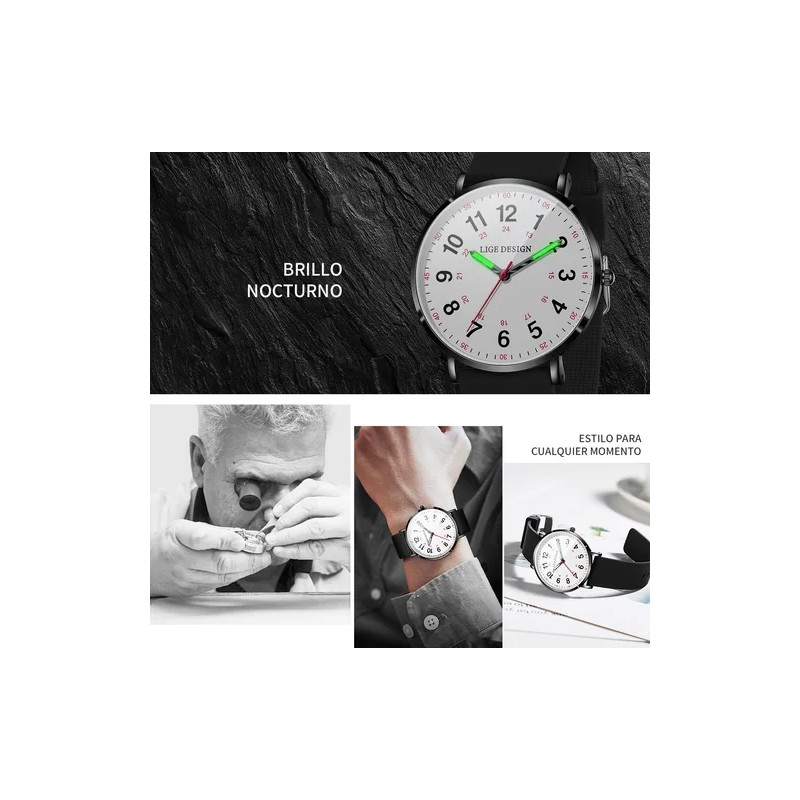 Este reloj Lige es una excelente opción para quienes buscan un diseño limpio, moderno y funcional. Su esfera clara de fácil lectura lo hace ideal para personas de cualquier edad que valoran la simplicidad y estilo atemporal.