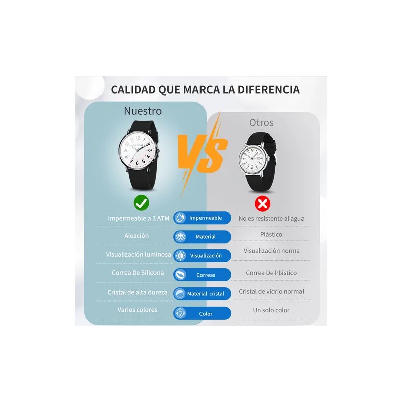 Correa: Material no especificado (probablemente silicona o cuero sintético)