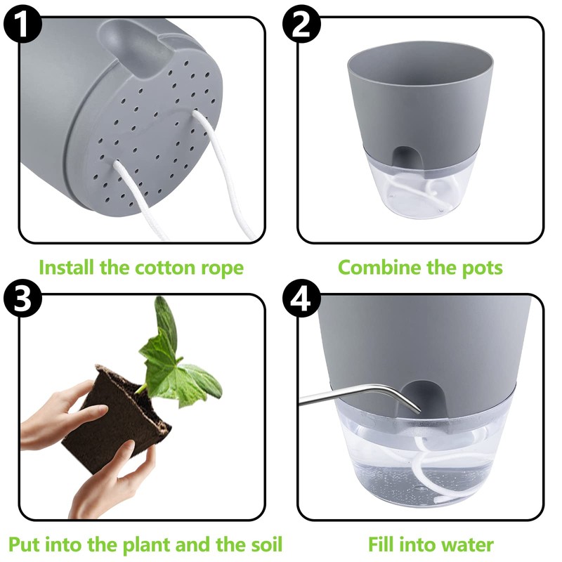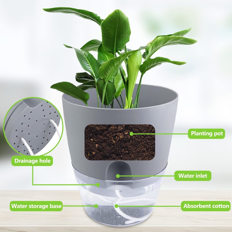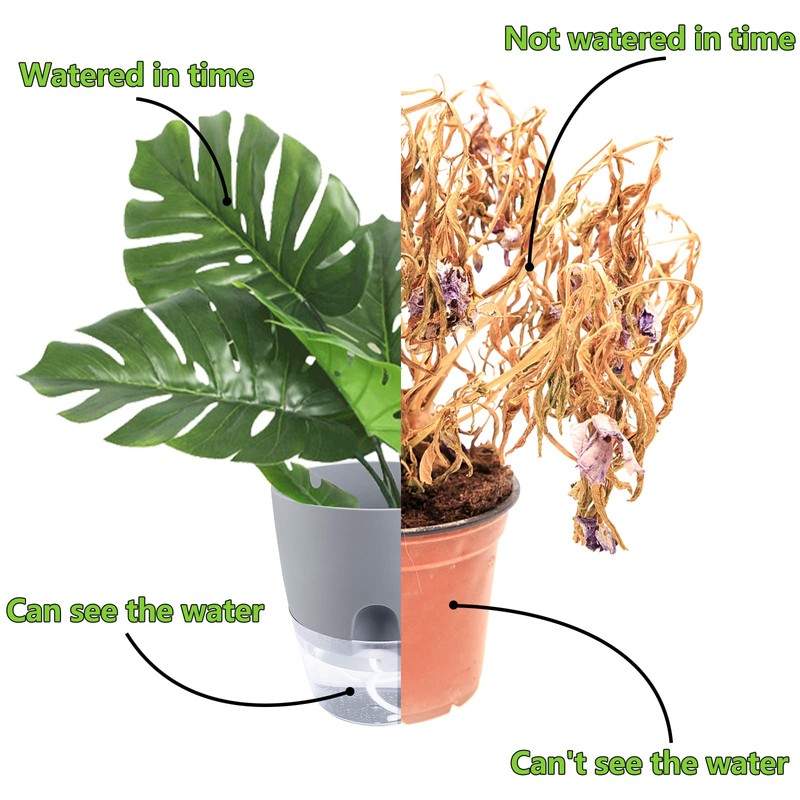- Easy to use: the self-watering flower pot is divided into top and bottom layers, so you can change the pot without adding soil, and the water storage pot has a water filling opening that allows you to easily add water