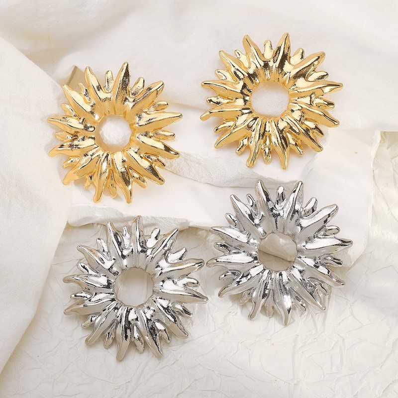 RELOVET Sunburst Earrings Studs Golden Tone Metal Petals Circle Large Stateme...