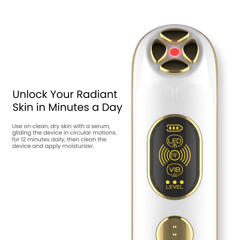 Relumins Eye and Face Massager is a compact beauty tool designed to gently massage and refresh the delicate under-eye and facial areas. It helps promote relaxation, reduce the feeling of puffiness, and provide a soothing experience after a long day. Featuring multiple massage modes, a smooth 24K gold-plated massage head, and an easy-to-use LCD display, this portable device is perfect for everyday skincare routines. Its lightweight and sleek design makes it convenient to use at home or on the go, bringing a touch of comfort and care to your self-care rituals.