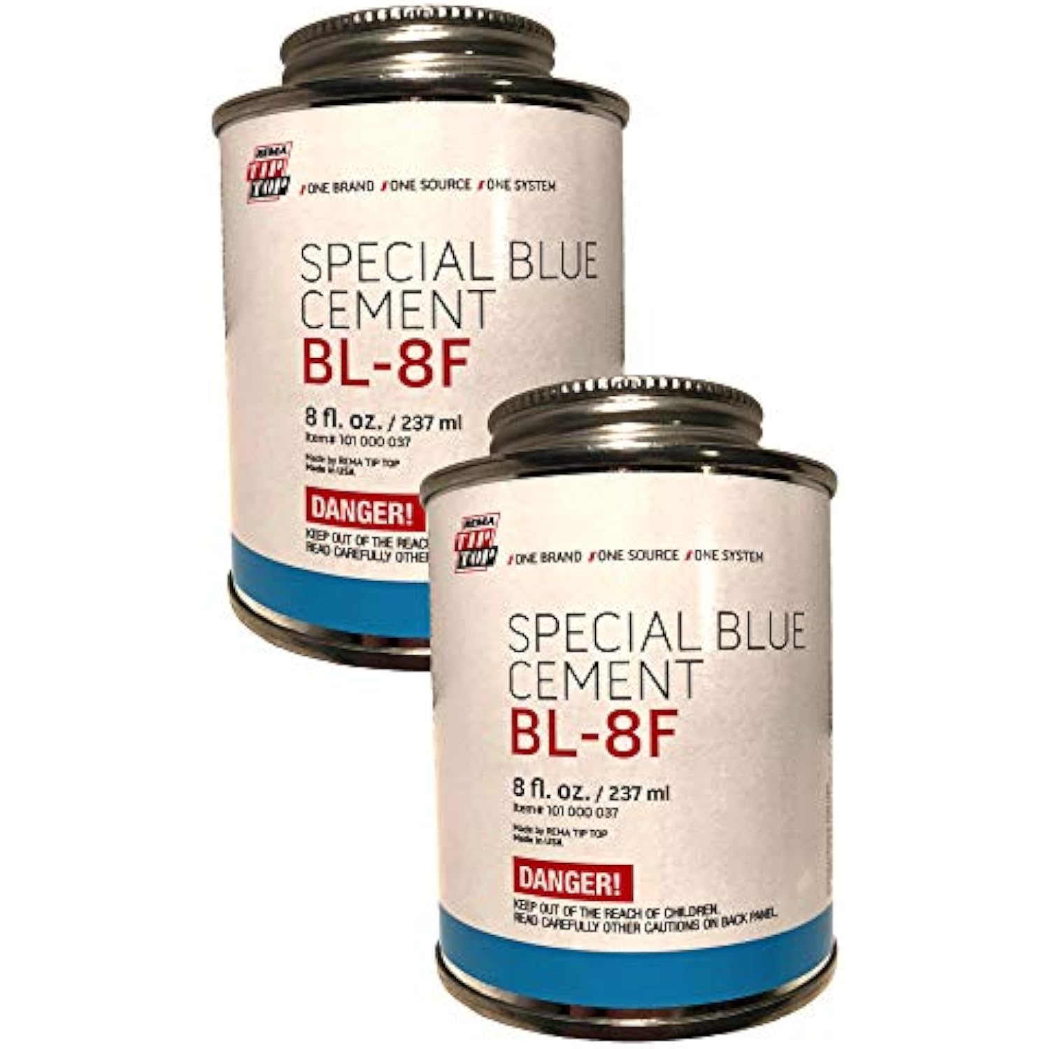 This is an 8 ounces can of Rema Tip Top Tire Repair Special Blue vulcanizing cement BL-8F, This product creates a nearly indestructible bond between tire and repair unit. Rema Tip Top's newest Special Blue Cement is free of CFC and aromatic compounds. It has a long shelf life. ✔ Applications: Specially designed for the application of Rema Tip Top Radial, Bias-Ply, and Universal, Minicombi & RemaStem repair units. Use for chemical installation of Rema Tip Top blue bonding layer repair units, Blue Floater Gum, and chemical vulcanizing compounds. ✔ Features & Specifications: Quantity: 2 Weight: 8 oz. (Ounces) x 2 Material: Special Blue Cement CFC and aromatic compounds free Fast Drying Item # 101 000 037  ✔ Recommendations:  Recommended for Rema Tip Top Repair materials.  Optimum adhesion for all fields of application  Suitable for warm vulcanizing in pre-cure retread applications with a temperature range of 212° F (98° C) to 257° F (100° C) and for chemical cold applications.  ✔ Precautions! ① Do not use Pre-Buff Cleaner, solvents, or compressed air on the buff texture. ② Do not mix Special Blue Cement with MTR Cement when applying cement to the skive area. ③ Do not use in conjunction with Rema Tip Top Super Boat or Plastic & Camping (Camp-last) repair materials. ④ Flammable, Do not use heat guns, or other artificial means to aid in the drying process. ✔ Manufacturer: Made in United States of America.