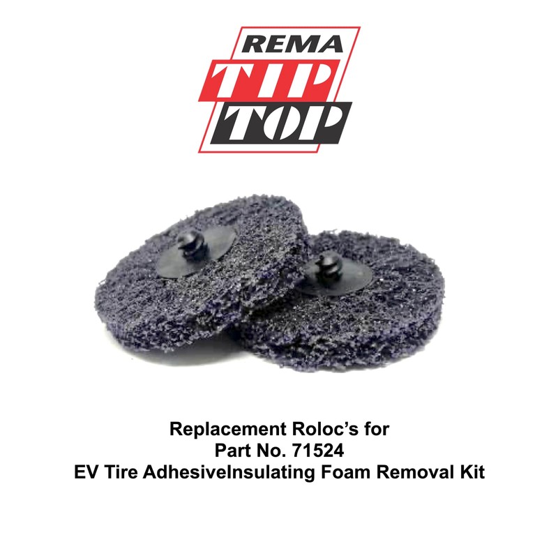 - Rema Tip Top 71525 is the official SKU for the Replacement Roloc Discs designed for use with the EV Sound Suppression Tire Adhesive Removal Kit (part 71524)