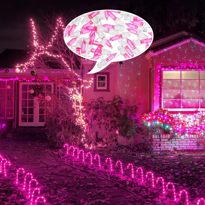 • Pink Lights: our wide angle LED replacement bulbs feature vivid pink glowing lighting effect, which can create a warm and romantic festive atmosphere; Pick the color that suits your usage scenario, suitable for artificial Christmas tree, wreaths and garlands light bulbs well, ideal for replacing existing bulbs that have burned out or grown old
