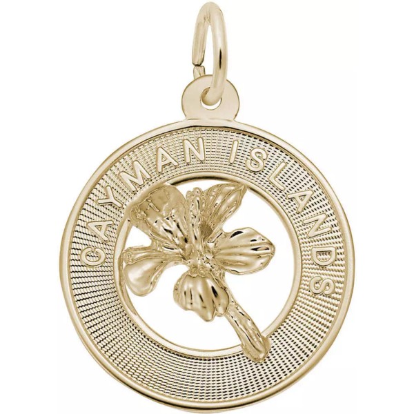 Small grand cayman palm tree ring charm by Rembrandt. Measures approximately 0.56 inches x 0.56 inches (14.28mm x 14.28mm). Genuine sterling silver with gold-plating.This charm will not fit slide-on bead-style bracelets. HOWEVER, you can add a Rembrandt CharmDrop to make it fit.