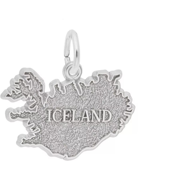 Iceland map charm by Rembrandt. Measures approximately 0.73 inches x 0.92 inches (18.52mm x 23.3mm). Genuine rhodium-plated sterling silver.This charm will not fit slide-on bead-style bracelets. HOWEVER, you can add a Rembrandt CharmDrop to make it fit.