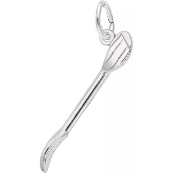 3 Dimensional Kayak paddle charm by Rembrandt. Measures approximately 1.01 inches x 0.1 inches (25.75mm x 2.64mm). Genuine rhodium-plated sterling silver.This charm will not fit slide-on bead-style bracelets. HOWEVER, you can add a Rembrandt CharmDrop to make it fit.
