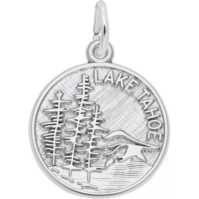 Mountain scene - lake tahoe charm by Rembrandt. Measures approximately 0.75 inches x 0.75 inches (20mm x 20mm). Genuine rhodium-plated sterling silver.This charm will not fit slide-on bead-style bracelets. HOWEVER, you can add a Rembrandt CharmDrop to make it fit.
