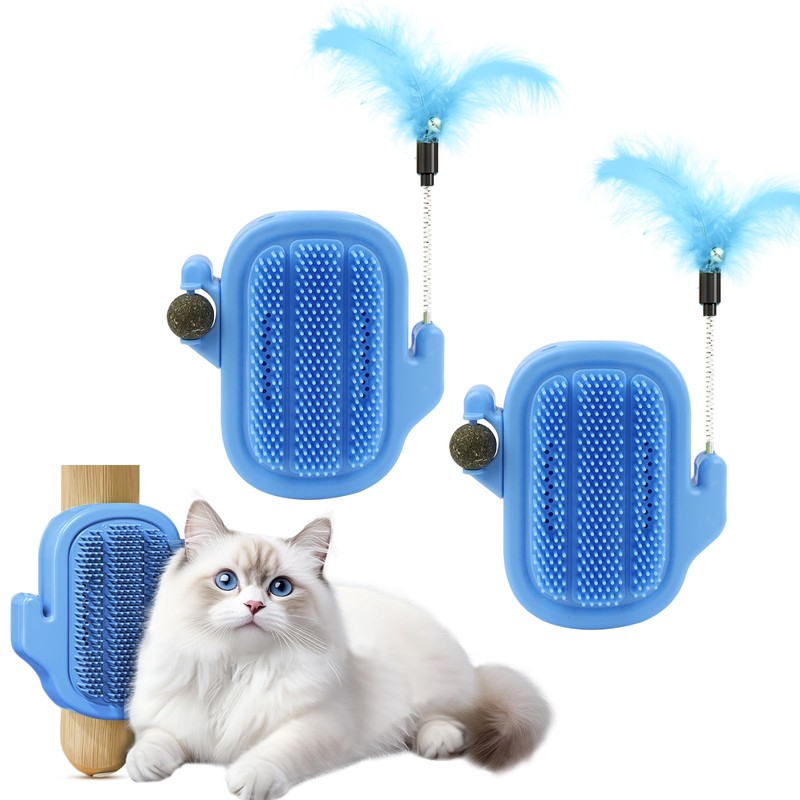 Remedare Cat Scratcher Toy 2 Pack – Stick-On Corner Brush with Catnip & Teaser Wand, Self-Grooming Massage Toy for Indoor Cats(Blue)