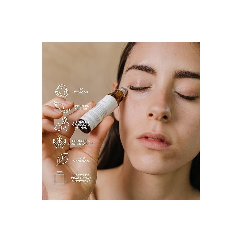 - USO: Recomendamos su uso en piel seca, piel grasa y piel mixta. Con el área limpia y mediante un suave masaje, aplica el producto en la zona a tratar del centro hacia afuera y de manera ascendente. Si metes el roll-on al refrigerador puedes potenciar sus efectos.