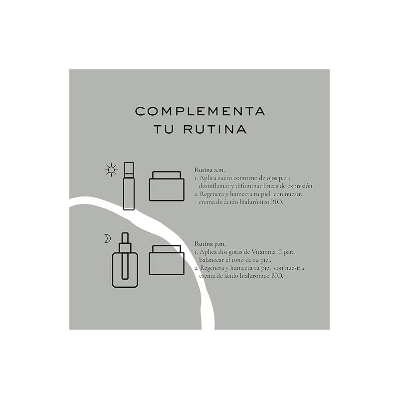 - INGREDIENTES: Agua desmineralizada, extracto de bambú , glicerina, carbómero, palmitoil oligopéptido, palmitoil tetrapéptido-7, sodio PCA, nicotinamida, hexapéptido-12, palmitoil tripéptido-5, extracto de aloe vera, D-pantenol, extracto de pepino , nicotinato de hexilo, goma guar, alantoína, hialuronato de sodio, ácido fólico (vitamina B9), piridoxina (Vitamina B6) y fenoxietanol.