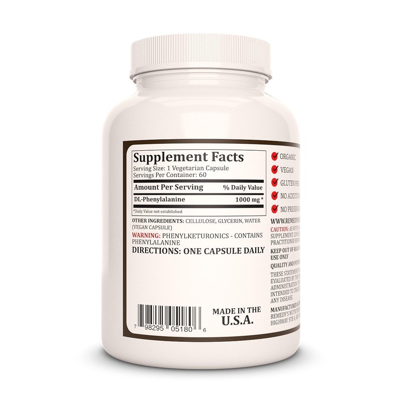 - WHAT YOU GET: 1 bottle of Remedy's Nutrition DL-Phenylalanine (DLPA) amino acid supplement with sixty 1000mg vegan capsules (two month supply).