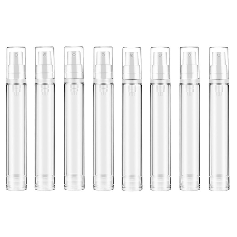 RemeeHi Vacuum Bottles 10ml 15ml 8pcs Pump Bottles Transparent Vacuum Emulsion Bottles Pump Type Airless Push Bottles Travel Bottles (Set of 8)