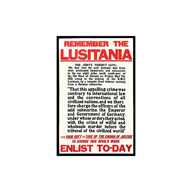 Remember RMS Lusitania - 1915 - World War I - Recruitment Poster