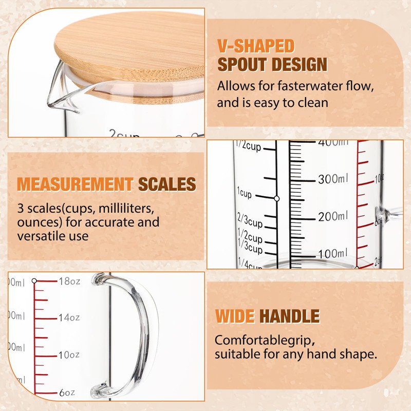 - Versatile Essential: nice for both professional and home kitchens, this glass measuring cup with lid is ideal for measuring and mixing ingredients, heating liquids or sauces, and conducting cooking experiments