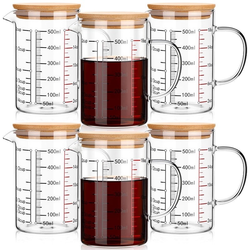 Remerry 6 Pack 500 ml Beaker Mug with Handle and Lid Glass Measuring Cup Graduated Beaker Mug Multi-function Food Grade Measuring Cup 17.6 oz