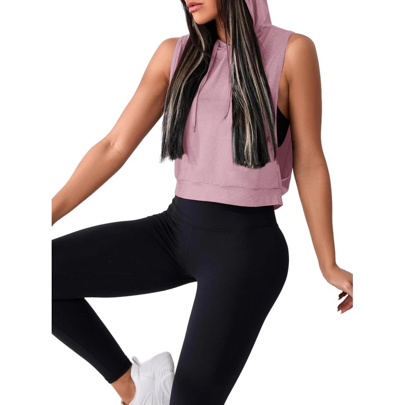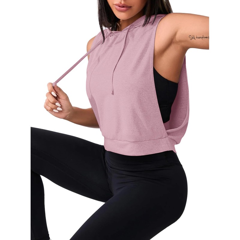 - The hoodies for women featuring sleeveless, hooded, cut out, drawstring, solid color, loose fit, athletic crop top.