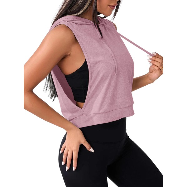 Remidoo Womens Sleeveless Hoodies Open Side Workout Activewear Crop Tank Top Pink X-Large