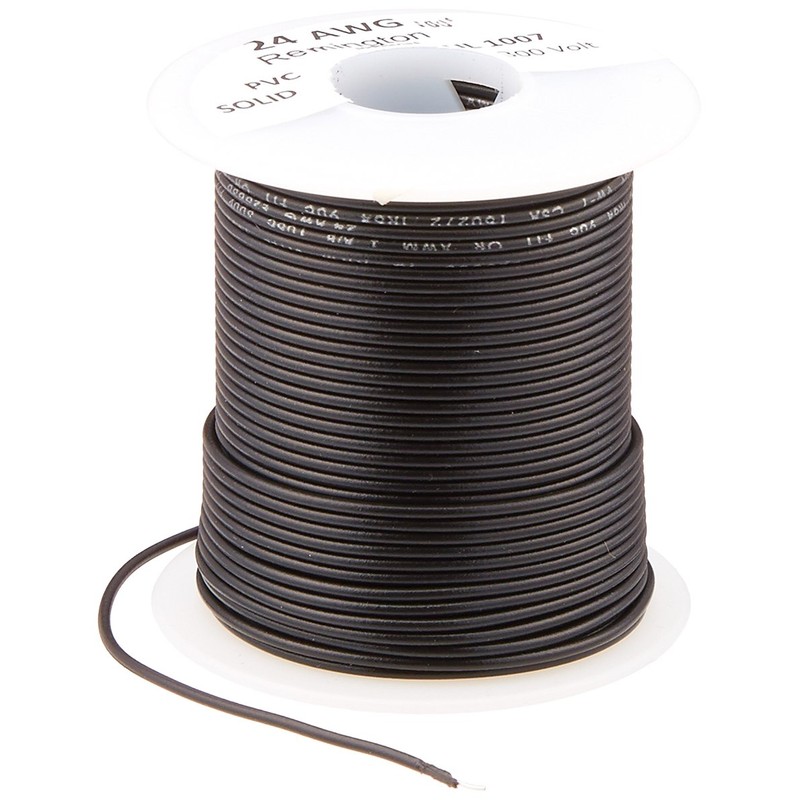 Remington Industries 24UL1007SLDBLA UL1007 24 AWG Gauge Solid Hook-Up Wire, 300V, 0.0201" Diameter, 100' Length, Black