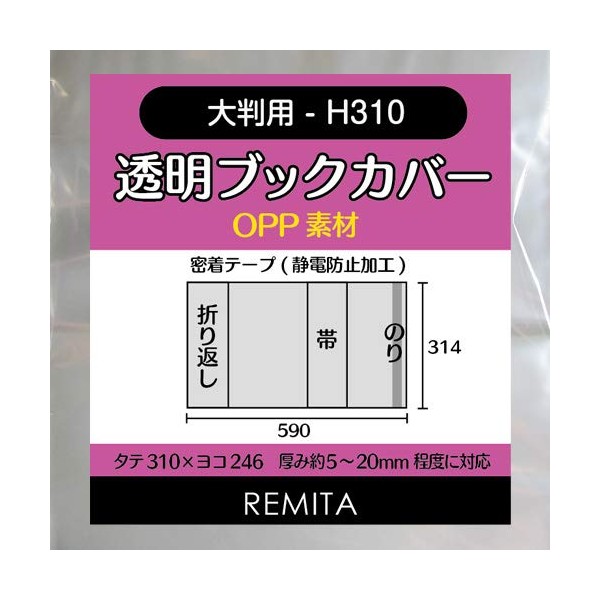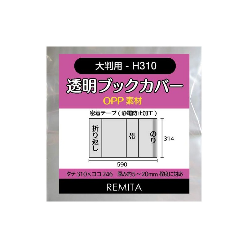 REMITA BC15H310OP Transparent Book Cover, Large Format-H310 (Example: Home Pictures, etc.), 15 Pieces, OPP Material
