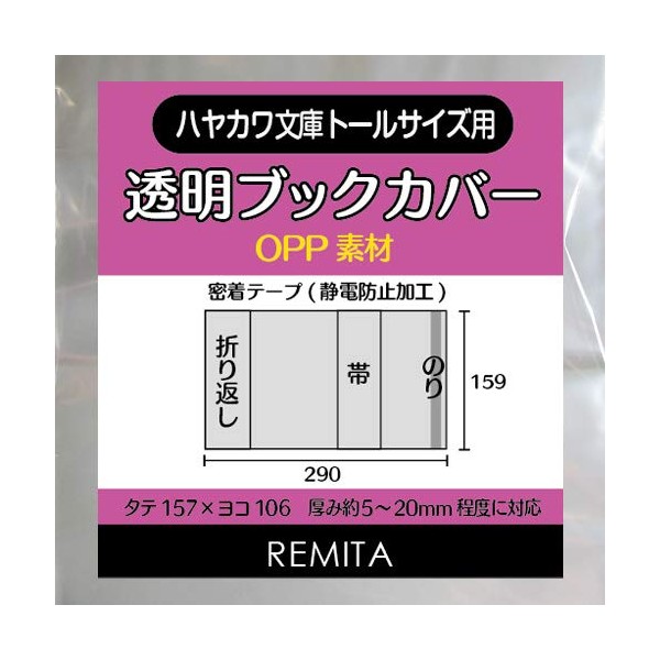 REMITA BC50HBTOP Transparent Book Cover, For Hayakawa Bunko Tall Size, 50 Pieces, OPP Material