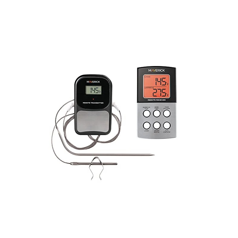 - Wireless receiver with LCD beeps and flashes when meat temperature goes above your programmed temperature. Count-Up and Count-Down timer. LCD of receiver has back light for use at night. Receiver has built-in stand.
