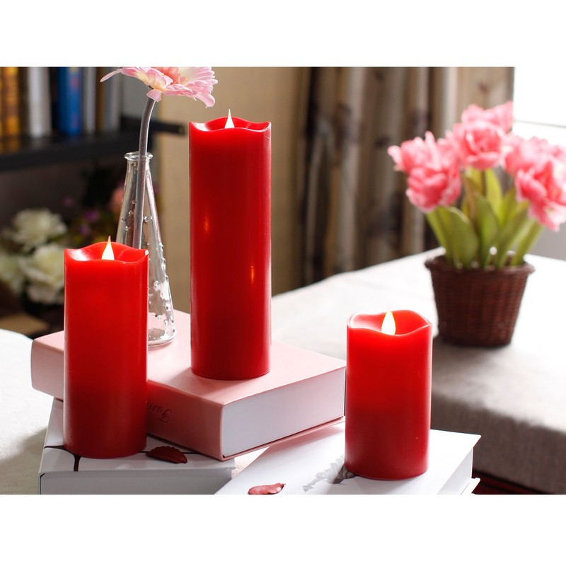 Remote Control 3D Moving Flame Led Candle with Timer, Battery Operated Candle for Home and Christmas Decoration, 3x9 Inch, Red