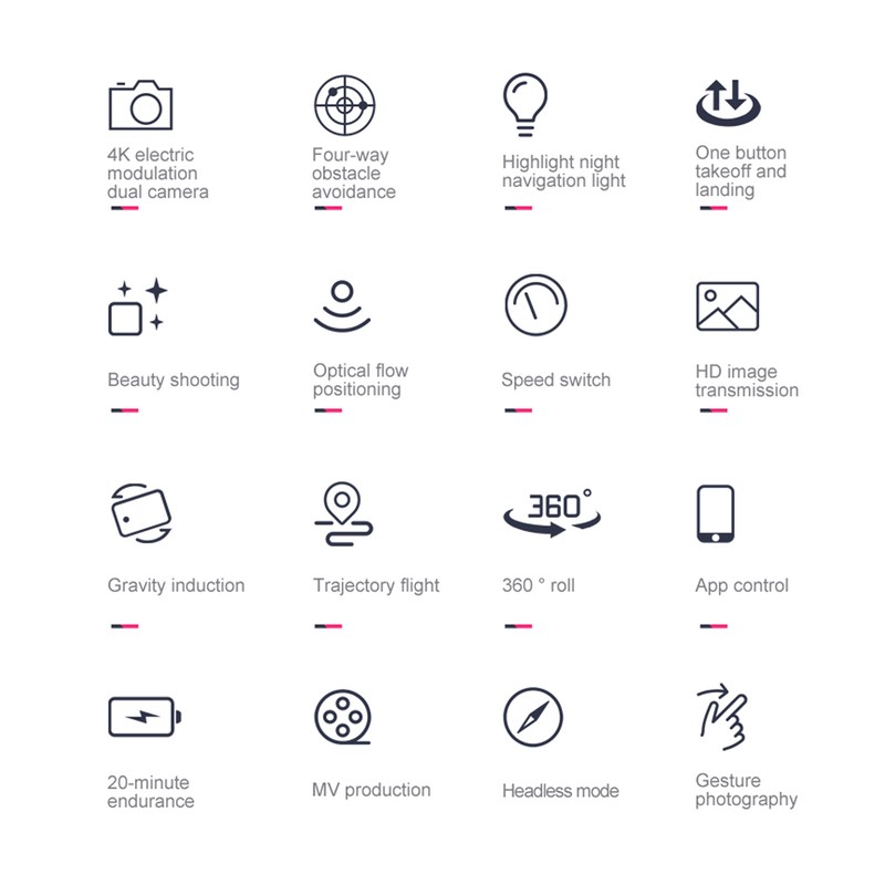 1、OBSTACLE AVOIDANCE: Equipped with 4 way obstacle avoidance system, 360 degree automatic detection of surrounding obstacles, prevent collision, scratch, collision, flight more comfortable. 2、MULTI FUNCTION: High speed rotation, camera adjustment, gesture control, headless mode, take off and landing with 1 button, altitude maintaining, low power warning, emergency stop. 3、HIGH DEFINITION: 4K electric adjustment double lens, support remote control angle, has better light sense and clarity 4K, which is 4 times of 1080P HD camara, the camera is clearer. 4、PORTABLE: Easy to fold, smaller size and lighter weight, easy to carry out for play, not only suitable for beginners, but also for professional players. 5、STABLE: Optical flowing positioning hover, based on the image detected by the bottom camera, visual positioning hover is carried out to keep the aircraft stable in flight.