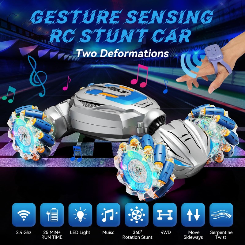 - Innovative Gesture Sensing Technology: Unlike traditional remote control methods, this car features advanced gesture sensing. Kids can control the car with simple hand movements, making it a unique and exciting toy.