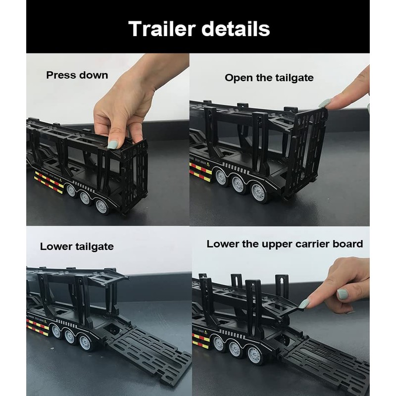 - 【Simulation Car Transporter Truck】 High simulation shape, the RC car transporter truck can carry and transport cars, and it can drive like a real truck on the ground under instructions of the remote control. Includes 4 random cars.