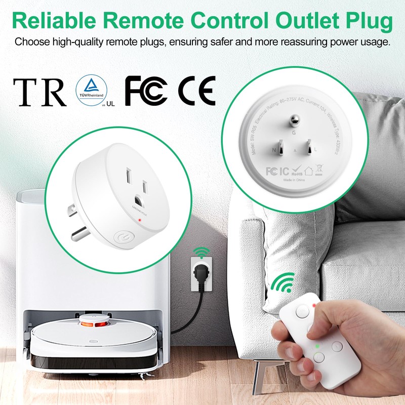- 【Safe and Reliable】Remote control outlet plug features an ultra-thin design, zero-crossing trigger tech, 4000V anti-surge protection, 15A fuse, electric shock-proof outlet, and 0.05W low standby power. Certified by CE, FCC, RoHS, CQC, and others. Trust in our Safe and Reliable solution for all your power protection needs! Rated Current: 15A, Rated Power: 1500W. 1-year worry-free after-sales service.