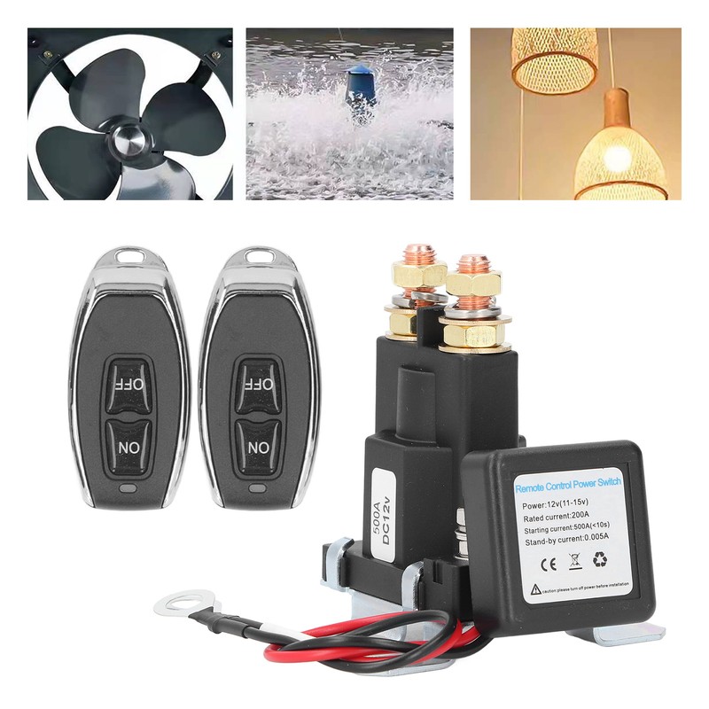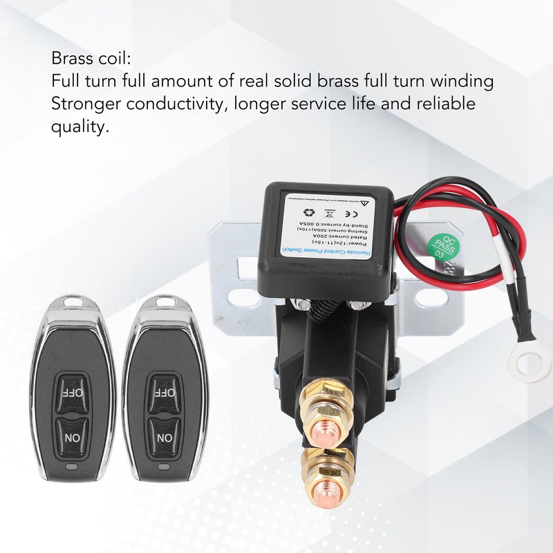 Remote Control Relay Switch Brass Coil Anti Leakage Waterproof Wireless Remote Switch with 2 Controllers 12V 500A