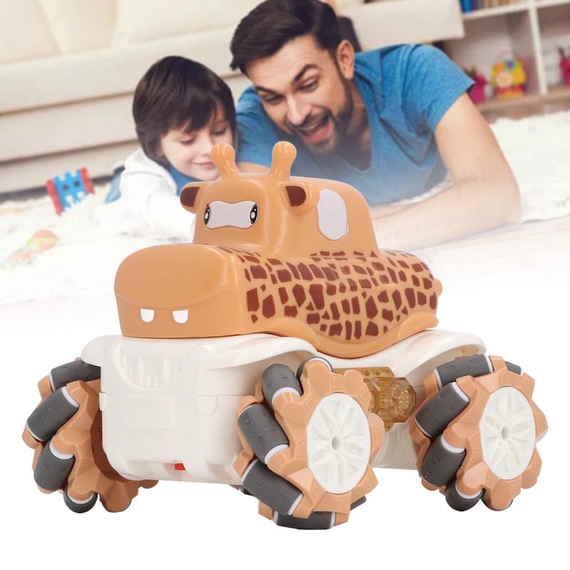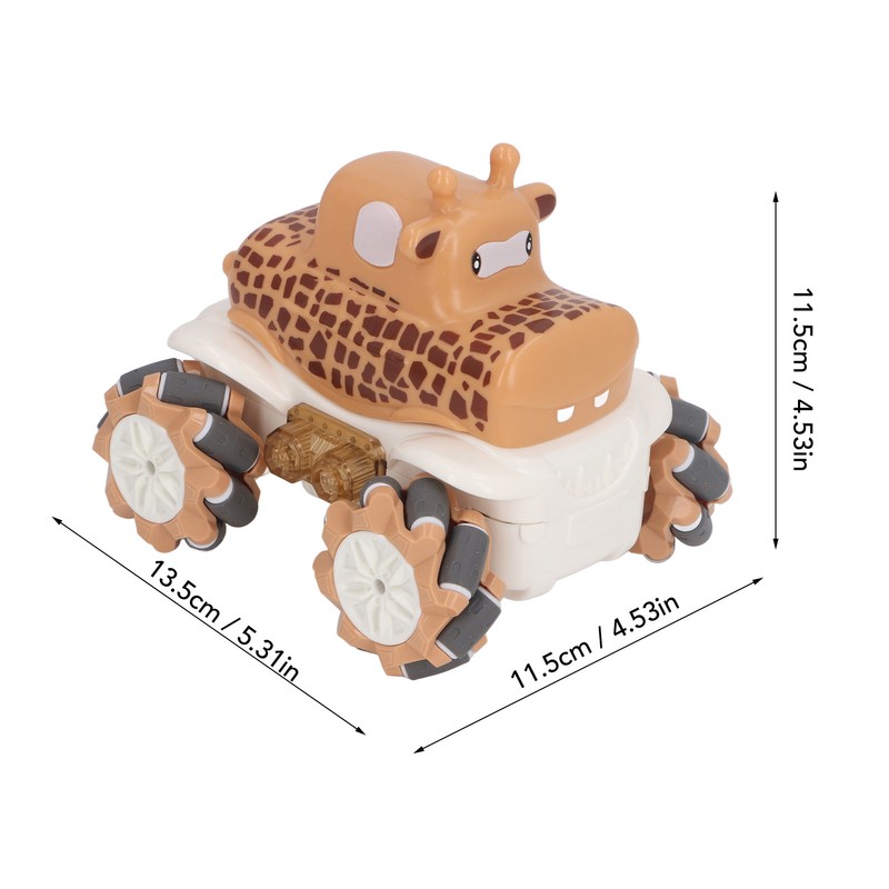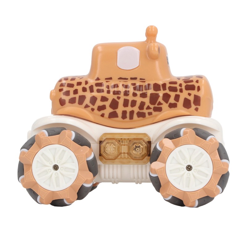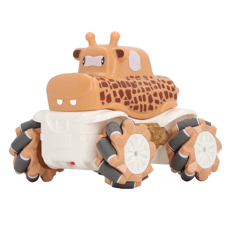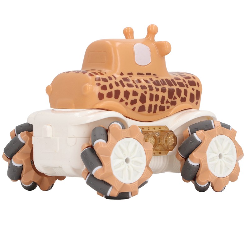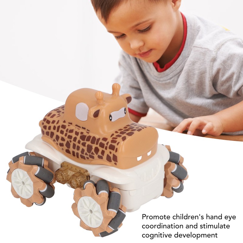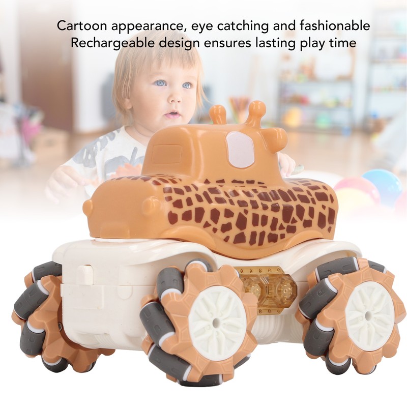 1、Robust and Reliable Construction: Crafted from premium plastic materials, this RC car ensures long lasting durability and reliability for extended use. 2、Remote Controlled Stunts: Supports remote control maneuvering to perform various stunt actions like drifting and side shifting for added excitement. 3、Convenient Rechargeable Feature: This toy car is equipped with a rechargeable function for quick and easy charging, eliminating the need for frequent battery replacements. 4、Adorable Giraffe Design: Featuring a cute giraffe cartoon design that catches children's attention, making this remote control car an ideal toy for boys. 5、Multi Functional Play: Not just for playtime, the car toy also aids in enhancing children's hand eye coordination skills, providing an interactive and educational experience.