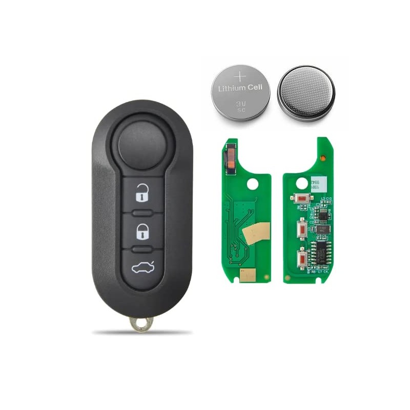 Remote Key Compatible with Fiat 500, Grande Punto, Evo, Panda, 500L, Lancia Ypsilon, Delta, Electronic Module 433 MHz with Transponder Chip (Delphi)