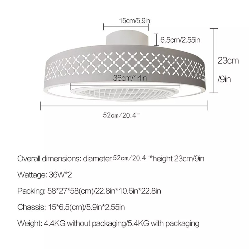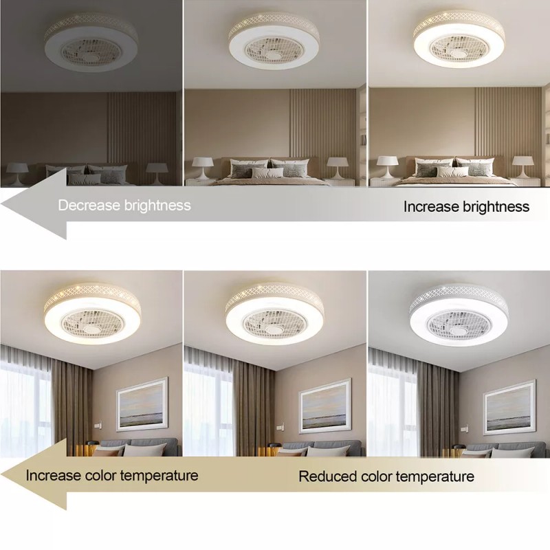 Remote LED Ceiling Fan Light Enclosed Chandelier Fan Lamp Dimmable 3 Speed Fan
