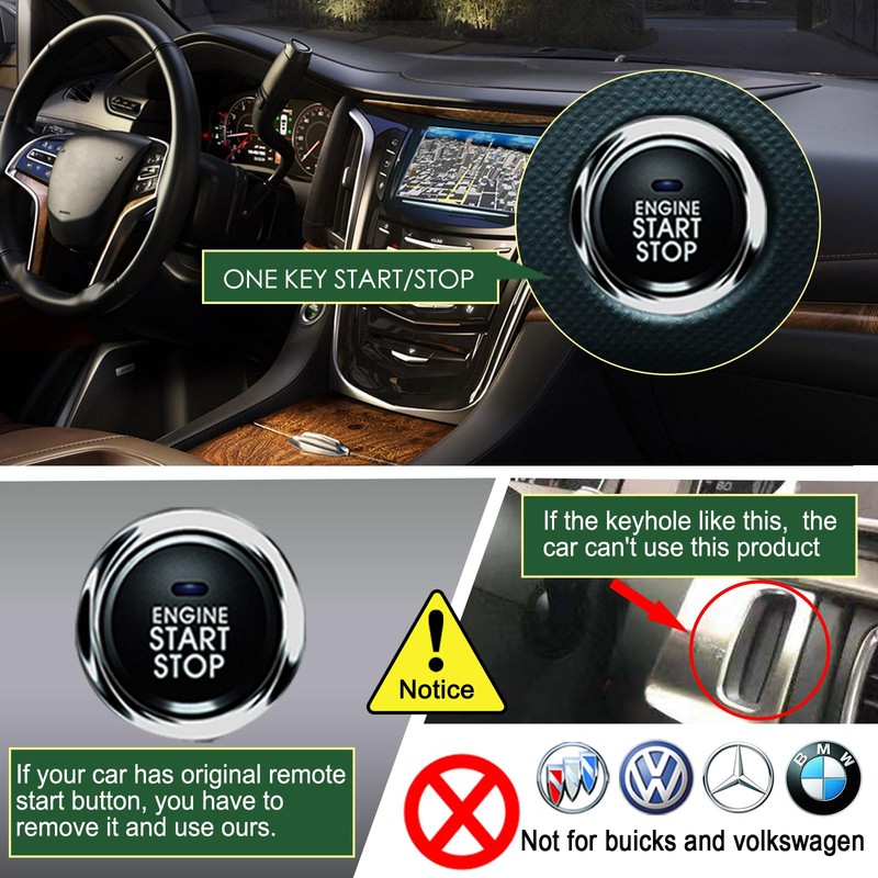 - 【Push Start Button for Car】Upgrade your car by installing the one key start part. Fits for 95% DC12V compact, sedan, coupes, SUVs, pick-ups on the market.