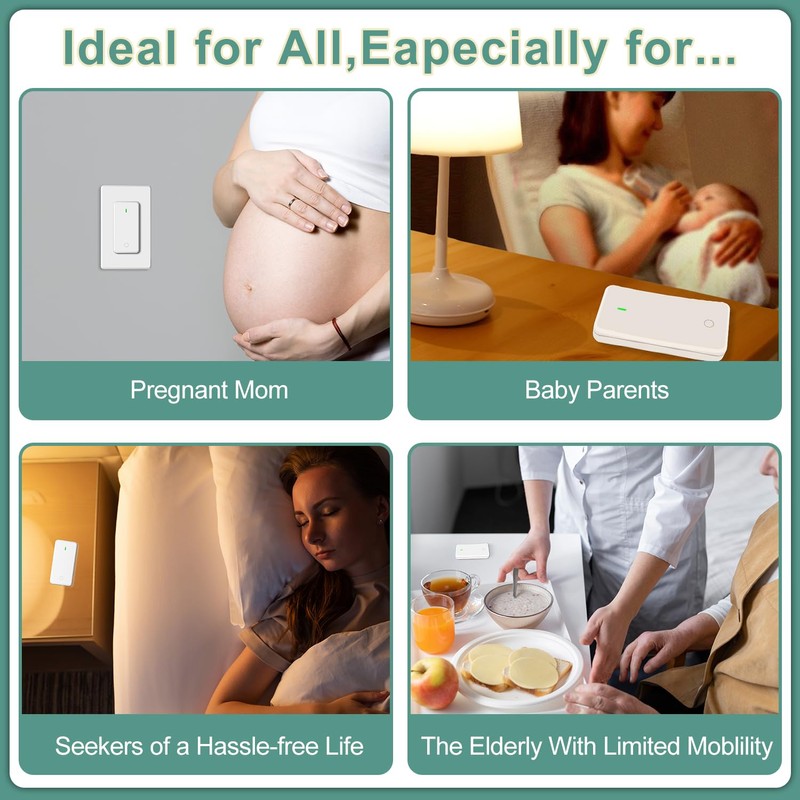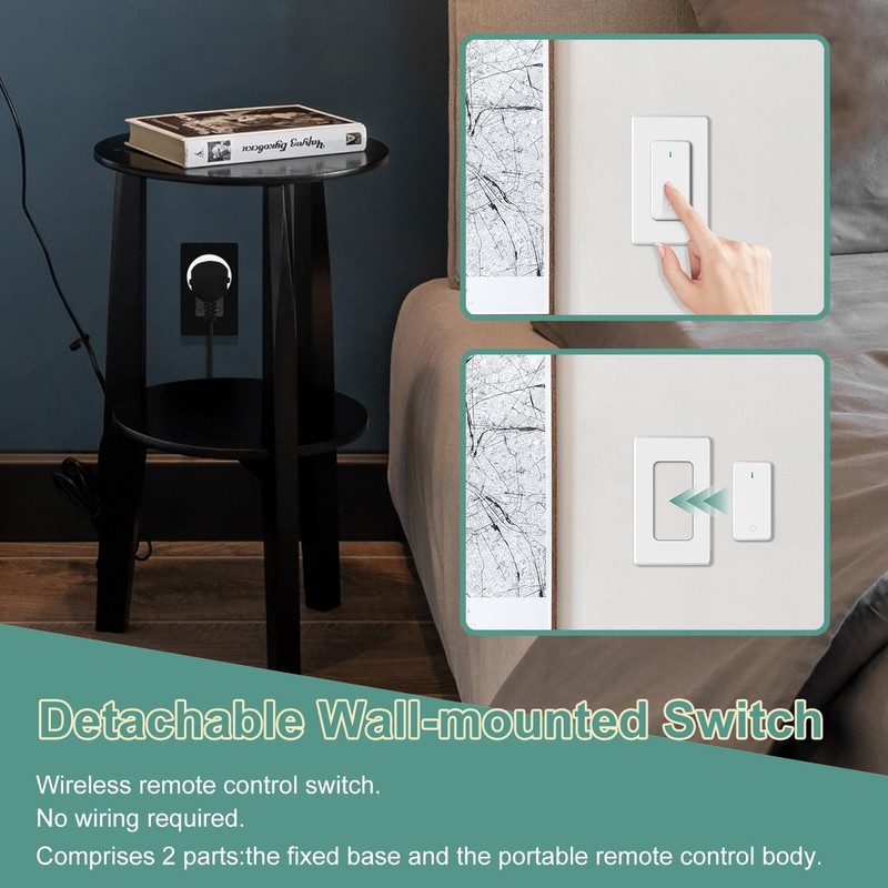 - ✅ Wall-Mounted and Portable Design】The compact remote control outlet includes a wall-mounted base and a lightweight detachable remote. Mount the base on the wall with the included tape or screws, or carry the portable remote for easy access. Perfect for families with young children, individuals with mobility challenges, or anyone seeking a convenient home setup.