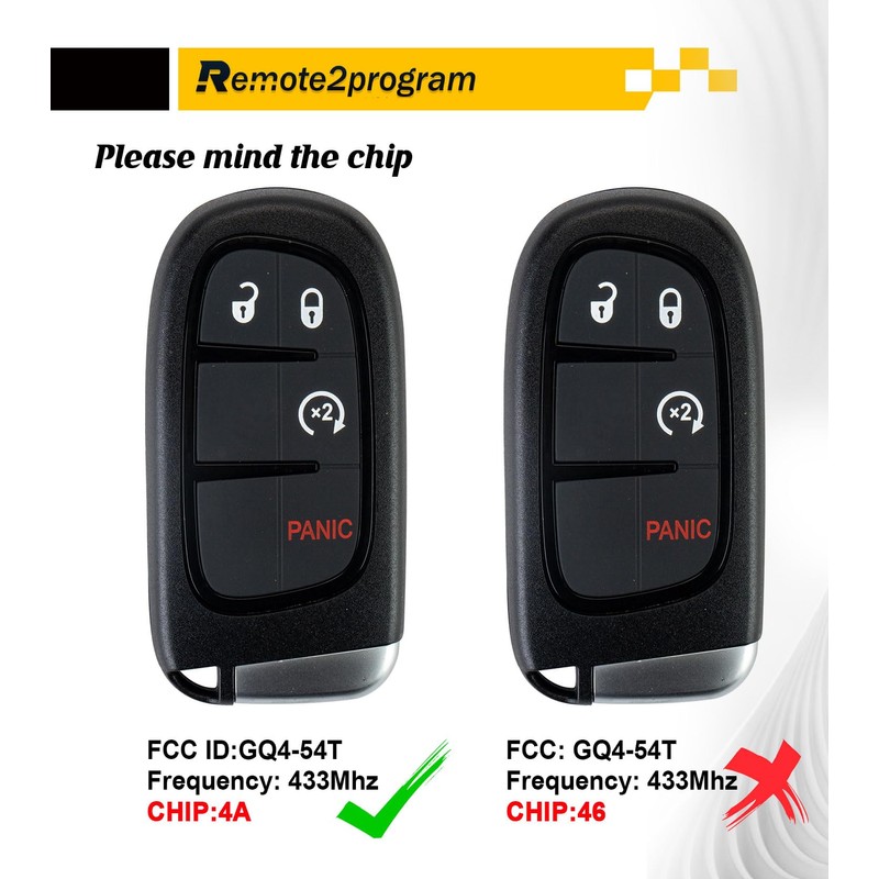 • Compatibility——Please confirm your Year/Make/model and FCC ID: GQ4-54T before you purchasing. Our kit fits for 2018-2020 Jeep Chrokee. Please review the product description page